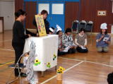 東っ子まつりの様子です。「深めよう絆 地域でジャンプアップあきまつり」をテーマに開催されました。英国式金管バンドソニアブラスをゲストに迎え,白鳥東金管バンドとの合同演奏や全校児童との合奏唱などで盛り上がりました。また,学年それぞれの学習発表会やPTA図書委員会の読み聞かせ,豚汁・ポップコーン・焼きいも・ロシアンクレープせんべい・バザー・金魚すくい・フリーキック・フリースローなどの模擬店で楽しいひとときを過ごしました。