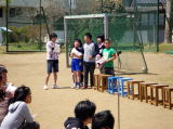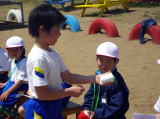 1年生を迎える会の様子です。小学校に入って初めて上級生のみんなと遊びました。音の鳴る犬のおもちゃももらいました。