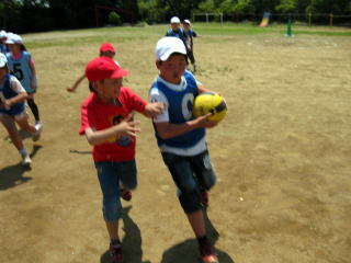 業間運動の様子です。今回は「シュートボール」という,ボールを使った運動をしました。ラグビーのような運動です。もしかしたら,日本を代表するラガーマンが白鳥東小学校から,出てくるかもしれませんね。