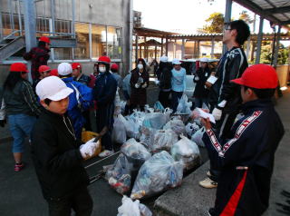 5年生が総合的学習の時間に,自分たちでできるボランティアについて考えたところ,白鳥東小学区のごみひろいをやるということになりました。空き缶やプラスチックの容器など様々な種類のごみが集まりました。
