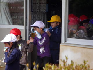 今年度最初の避難訓練が行われました。「おかしも」の決まりを守って,すばやく避難場所へ移動することができました。
