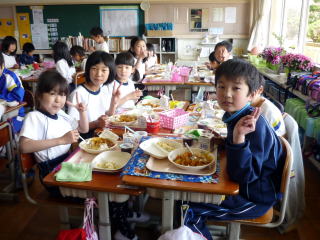 給食は子ども達にとって,本当に楽しく過ごせるひとときです。給食を食べているときの子ども達の笑顔,輝いていますね。