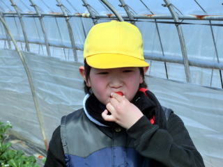 3・4年生がいちご摘み体験をしました。鉾田市の名産でもあるいちごをおいしくいただくことができました。