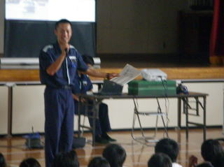 鹿島海上保安署主催で海の安全教室が開かれました。鉾田市の全公立小中学校を代表して,有意義な講話を聞きました。白鳥東小学校は海のそばにあるので,海で遊ぶときの注意事項をたくさん教えてもらいました。