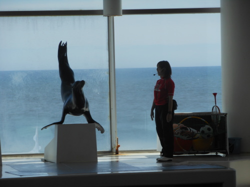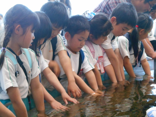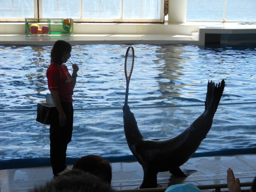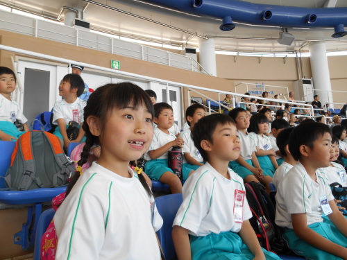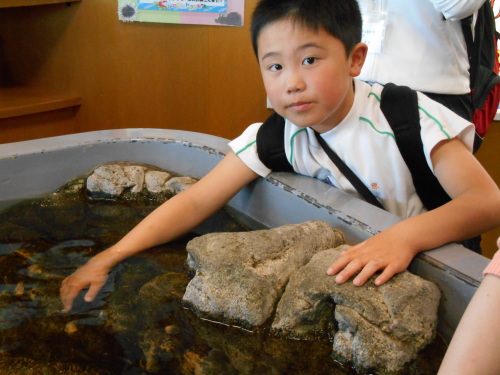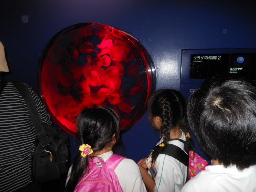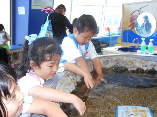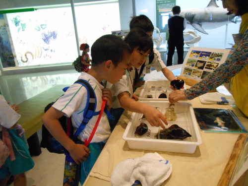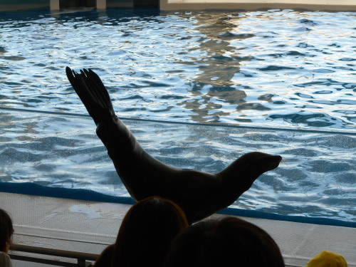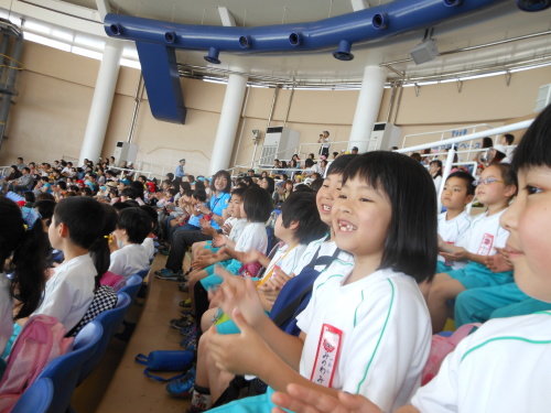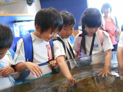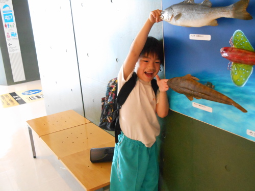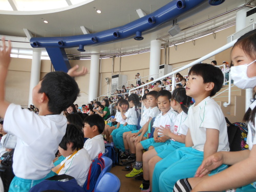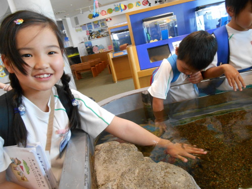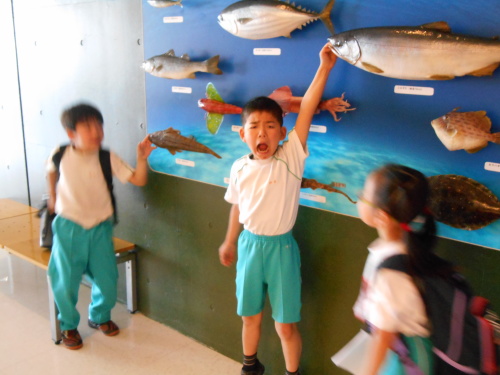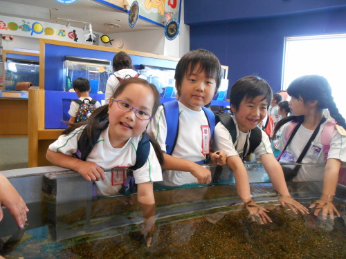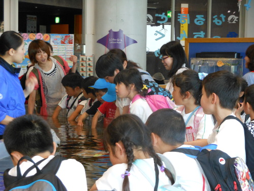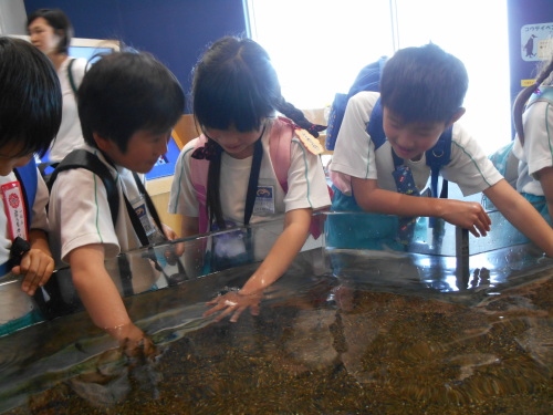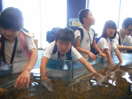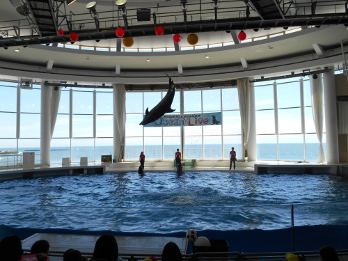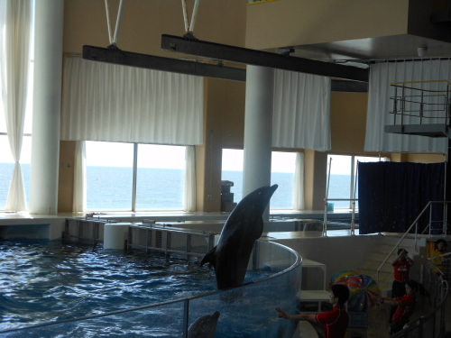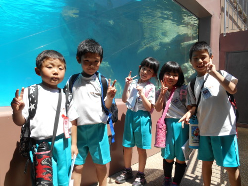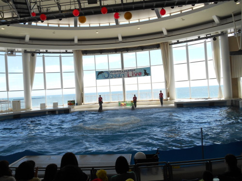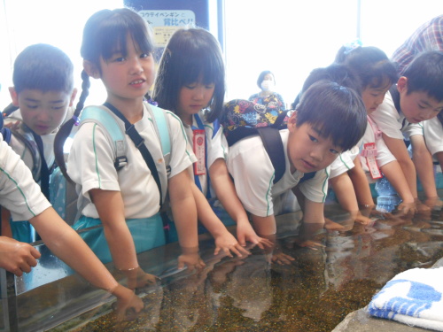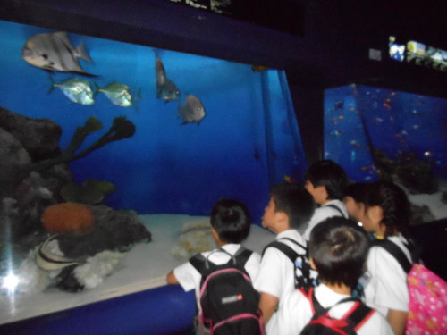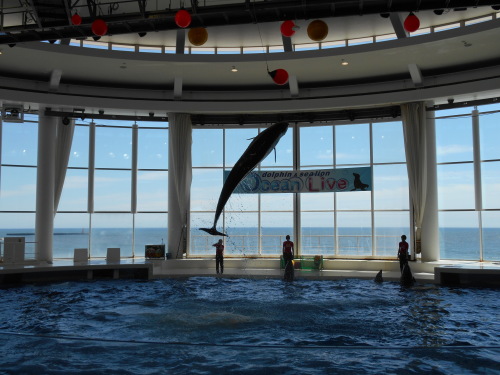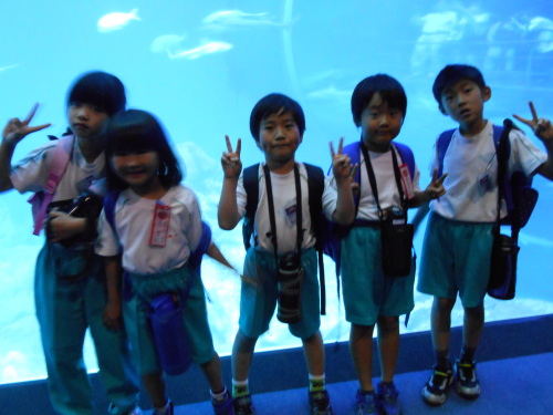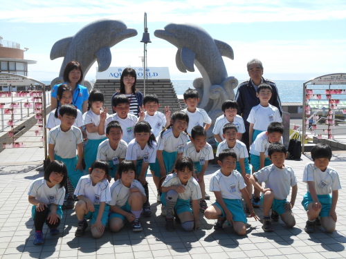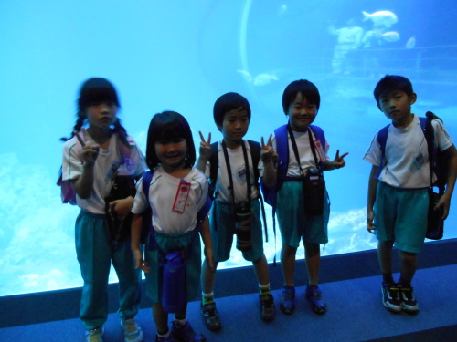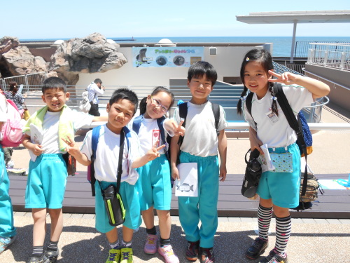 アクアワールドでイルカショーを見ました。班別でのたんけんも楽しかったです。