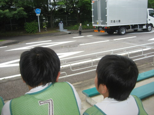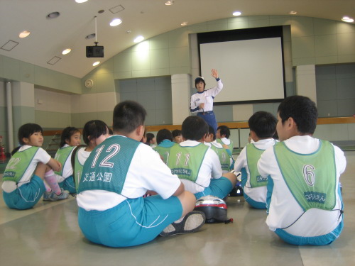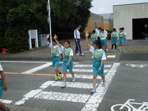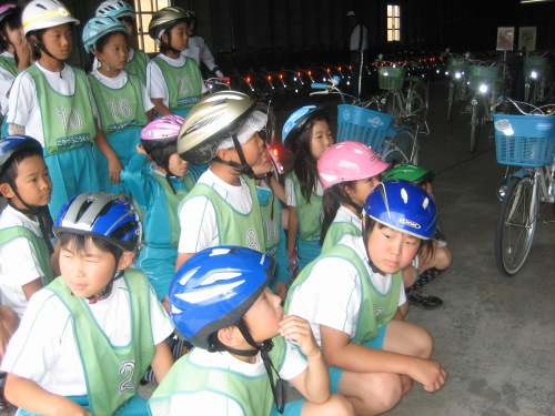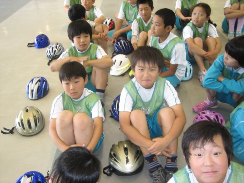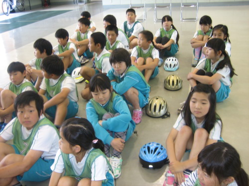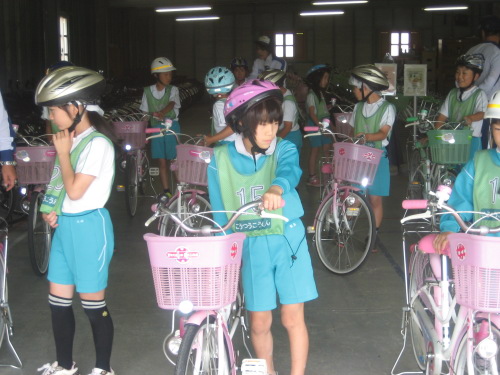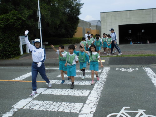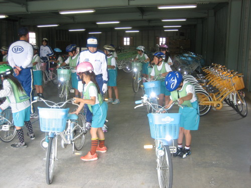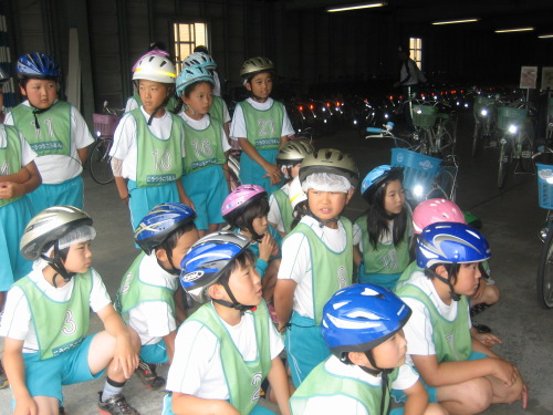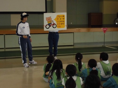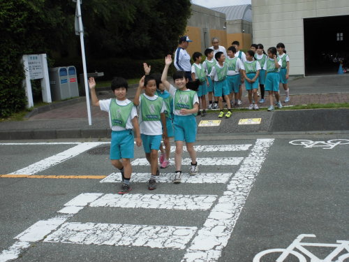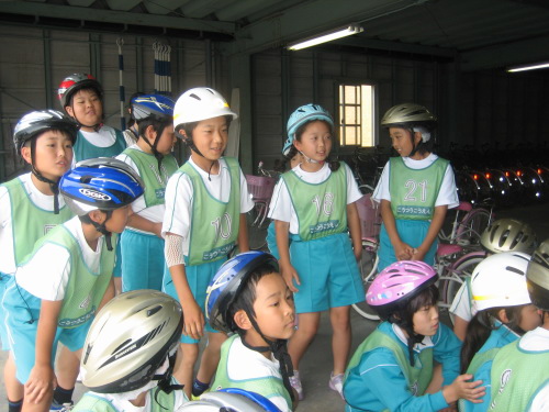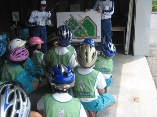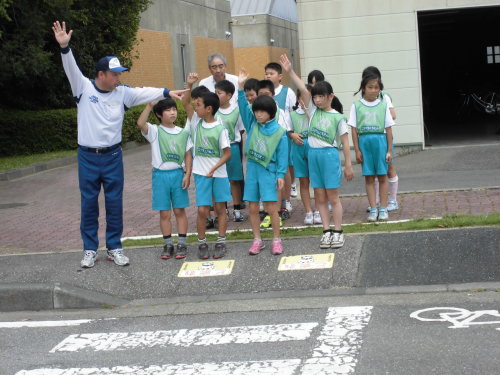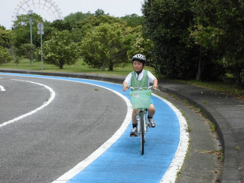 交通公園で自転車や交通ルールについて体験しました。