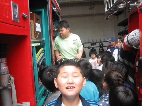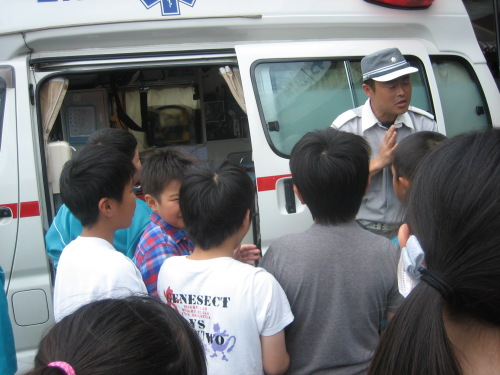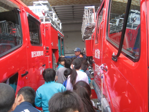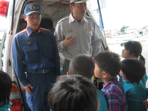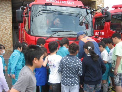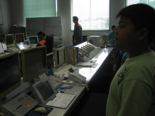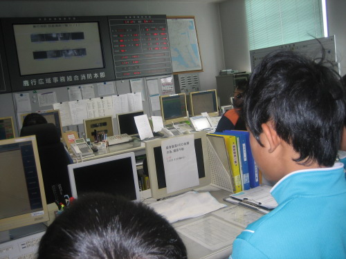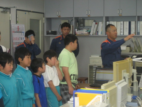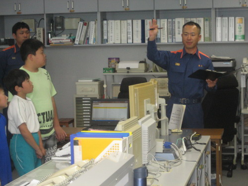 消防署では,消防通信司令室を見学しました。