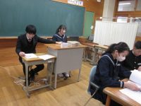 2026.2.6 入学説明会6年生とその保護者の皆様が来校され、入学説明会を行いました。 感染症拡大防止のため、4つの教室に分かれオンラインでの説明会となりました。 学校生活について生徒会から説明を聞いたり、授業参観をしたり、携帯・スマホ教室では 親子で使い方のルールを決めてもらったりしました。 6年生の皆さんのしっかりと話を聞いている姿が印象的でした。 入学される4月がとても楽しみです。
