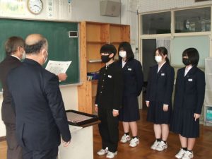 全校朝会で表彰伝達が行われました。たくさんの生徒達が表彰されていました。引き続き、多方面での活躍を期待しています。