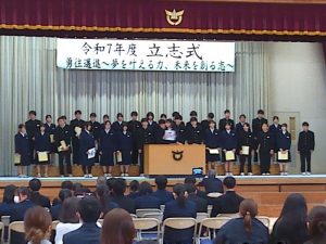 本日、5時間目に第2学年立志式が行われました。生徒たちが考えた「勇往邁進 夢を叶える力 未来を創る志」のテーマのもと、一人一人の将来の目標や夢を表す漢字一文字を色紙に掲げ、自己の成長を誓う式典になりました。これから、目標や夢に向かって突き進む決意や思いを堂々と発表することができました。また、見に来てくれた保護者の方に感謝の気持ちを学年での合唱で伝えたり、実行委員を中心に感謝のメッセージを発表しました。