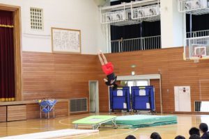 1年生と2、3年生の対面式が行われ、生徒会役員からの学校紹介と各部活動の紹介を行いました。