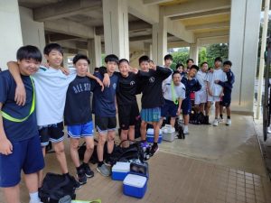 サッカー部と男子バスケットボール部が出発しました。