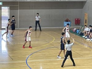県東地区新人戦男子バスケットボール部の準決勝が始まりました。
