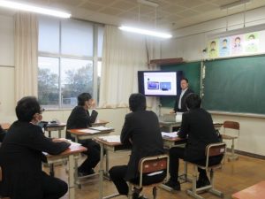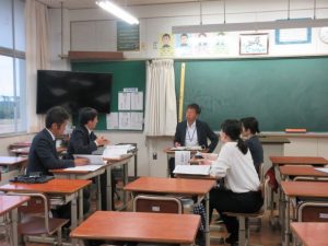 本日は、鹿行教育事務所の4人の先生方に来ていただき、先日の授業についての研修を開催しました。