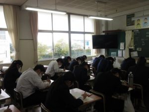 10月23日(木)2学年いばらきっ子郷土検定の実施 本日2学年を対象に、いばらきっ子郷土検定を実施しました。この検定は茨城県や鉾田市の歴史や文化,人物、自然,観光,農林・水産などについての内容となっています。2年生は各学級において、集中して問題を解くことができました。