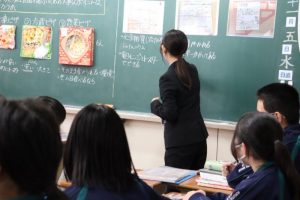 中学1年の家庭科で、教育実習生による研究授業で「加工食品の特徴」について学習しました。