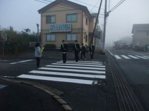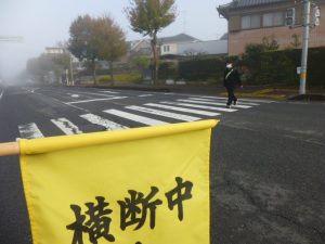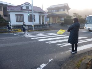 本日、PTA地域校外委員の保護者の方による「朝の交通安全指導」が実施されました。