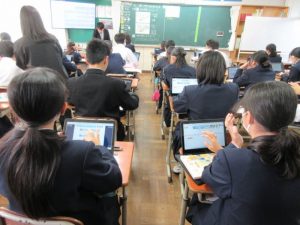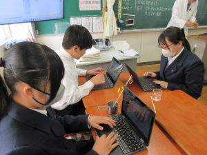 11月11日(火)stuDX授業公開 本日は鉾田市stuDX推進校授業公開が行われ、1年3組が数学科、2年1組が理科の授業公開がありました。それぞれのクラスでは、課題解決に向けて、グループで協力しながら、学習に取り組むことができました。