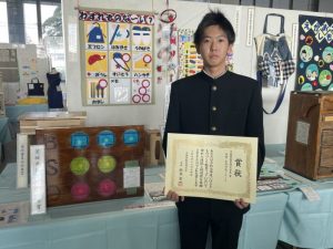 11/16ものづくり教育フェア表彰式 茨城県ものづくり教育フェアの表彰式が、県庁で行われました。 2名の生徒が県教育研究会長賞を受賞しました。 おめでとうございました。 なお、2名の生徒の作品は、東京で開催されます全国展に出品されます。