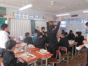 3年生を対象にしたお楽しみ給食が実施されました。わかめごはんや豚汁、エビフライ、たくさんのデザート…など、様々なメニューに子どもたちも盛り上がっていました。