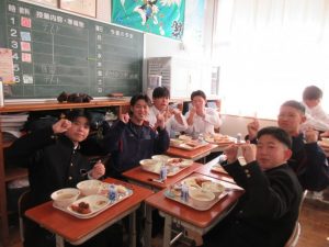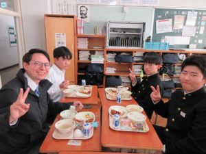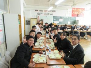 教室では、クラスの友達やお世話になっている先生方と楽しく会食をすることができました。