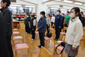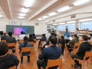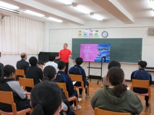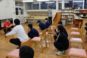 今回は、講師の先生を招いて、「スポーツを楽しむために~けがの防止につながる正しい姿勢~」の講演・演習をしました。正しい姿勢を目指して、保護者・生徒・教師が参加し、体の動かし方やストレッチ方法について具体的に学ぶことができました。