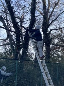 12/13建設業組合ボランティア作業 建設業組合の方々によるボランティア作業が行われました。職員作業で手の届かない校舎裏の樹木伐採を中心に行っていただきました。 校舎に陽の光が入り、学校が明るくなりました。 ありがとうございました。