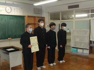 朝、オンラインによる冬季休業前集会が行われました。会の中では、冬休みの過ごし方などのお話がありました。3時間目の大掃除では、隅々まできれいにする生徒たちが印象的でした。4時間目には、オンラインによる表彰伝達・表彰報告があり、吹奏楽部、男子バレーボール部、女子バレーボール部、男子バスケットボール部の活躍が周知されました。冬休み明け、新たな目標をもって更なる成長を見せてくれることを期待しています。