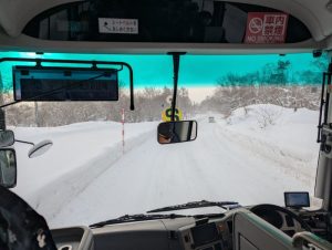 3日目の朝、いよいよ最終日です。おいしい朝食をとり、現在バスでスキー場に向かっております。