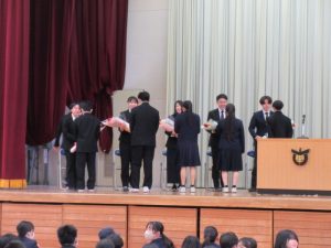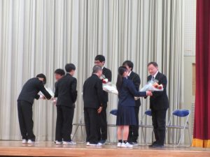 代表生徒による感謝の言葉とともに、花束が贈呈されました。