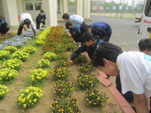 協力してくれた生徒のおかげで、花壇がきれいになりました。