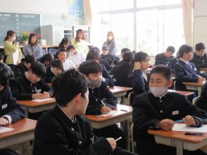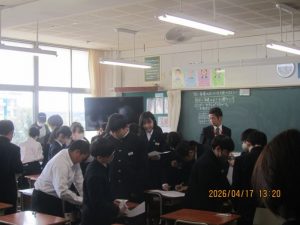 本日、授業参観が行われました。1年生は、学級活動で「友達のよさを見つけよう」2年生は、道徳で「それ、伝えるべき?」3年生は、学級活動で「自分の進路について考えよう」という学習内容で授業を行いました。どの学年も、話合い活動を通して、自分の考えを伝えたり、相手の考えを聴いたりすることで、考えを深めることができました。