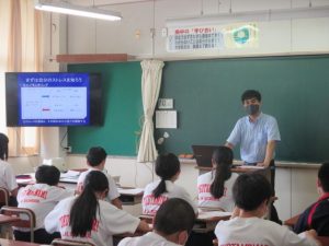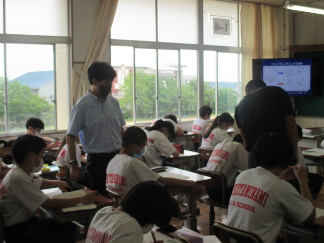 学校再開から約1週間が経ちました。本日は,各学級ごとに,生徒自身のコロナウイルス感染症防止対策の実施状況をチェックする時間をもちました。登下校~放課後の各場面ごとに振り返りながらの指導を行いました。