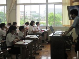 本日の全校朝会は,1年生の学級委員任命と表彰伝達が放送で行われました。学級委員の皆さんには,学級をよりよくするためにみんなをリードしていってもらいたいと思います。また剣道の昇段試験合格の表彰も行われました。学校長からは,3年生に対して「部活本来の目的を思い出して,最後まで頑張って取り組もう」ということ,本校の玄関入口の石碑に刻まれている「校訓」について話がありました。
