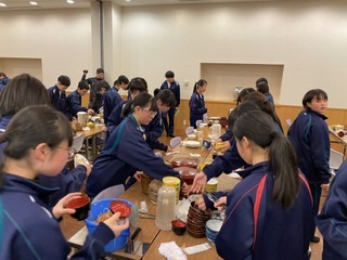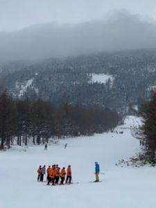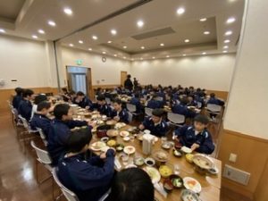 1学年スキー宿泊学習(2日目)⑧ 2日目のスキー教室の後,スキー場の売店でお土産を購入しました。 その後,時間通りにスキー場を出発し,宿泊に到着しました。 本日は雨のため,残念ながら雪上活動は中止になりました。現在,各部屋で休憩の時間になっています。