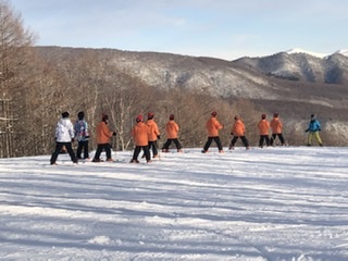 スキー教室を終えて,バスに乗り込みました。宿舎に向かいます。