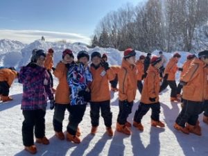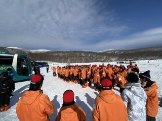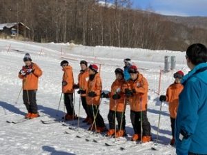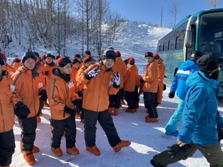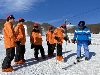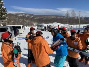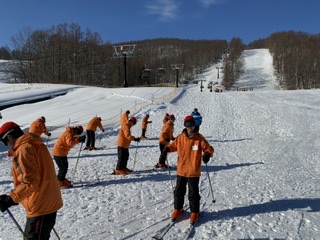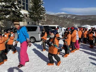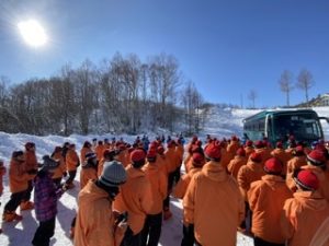 スキー場に到着し,開校式を行い,スキー教室が始まりました!
