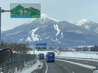 先程,猪苗代磐梯高原ICから高速道路を降りました。宿舎へ向かっています。