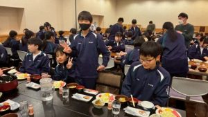 2日目の朝です。元気に朝ごはんをたくさん食べました。今からバスで2日目のスキー学習に向かいます。