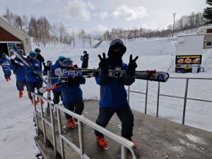 無事に宿舎に到着しました。入所式、着替えをしてスキー場に向かいます。