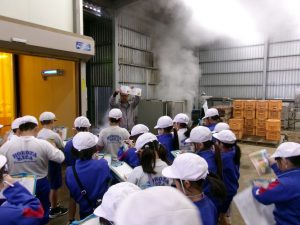 本日、3年生は校外学習で、農事組合法人あさひ菜様の工場に干し芋づくりの見学に行ってきました。