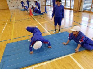 4年生の体育では「ブレイキン」に取り組んでいます。