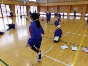 前跳びや二重跳び、はやぶさなどいろいろな技に挑戦していました。ペアでアドバイスし合いながら練習に取り組んでいました。