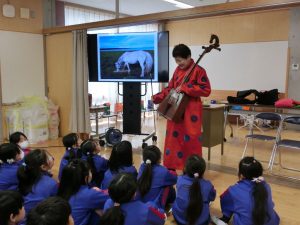 子どもたちは、初めて聞く馬頭琴の音に耳を澄ませて