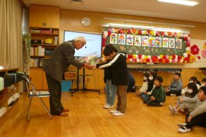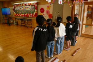 実行委員を中心にプログラムを考え、さつまいもの育て方や種類についてパワーポイントで発表したり、歌やリコーダーを演奏してプレゼントしたりすることができました。