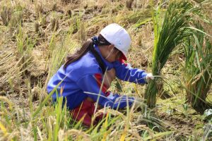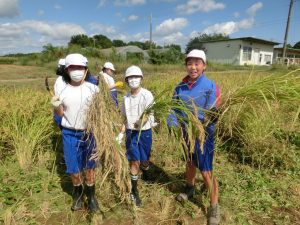 5年生が稲刈り体験を行いました。鉾田二校生達に教えてもらいながら、夢中になって取り組みました。