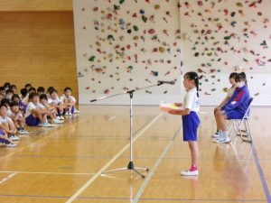 児童代表で3名の児童が、前期を振り返っての作文を発表しました。