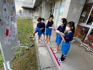 国語の説明文の単元で書いた「分かりやすい説明書」を1年生に説明し、生活科で作ったおもちゃで1年生に遊んでもらいました。