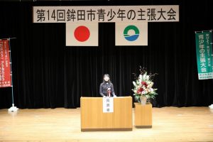 最後に、6年生の代表児童が太鼓の体験をしました。