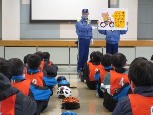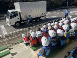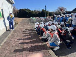 12月11日(木)に4年1組と4組が、12日(金)に4年2組と3組がひたちなか市にある交通公園へ校外学習に行きました。安全な自転車の乗り方についての講習、ダミー人形による交通事故実験の見学、横断歩道の渡り方や自転車乗車の実技等、盛りだくさんの内容で学習してきました。講習をする警察官の話を真剣に聞く4年生の姿からは、交通安全をしっかり守っていこうとする意識の高まりが感じられました。